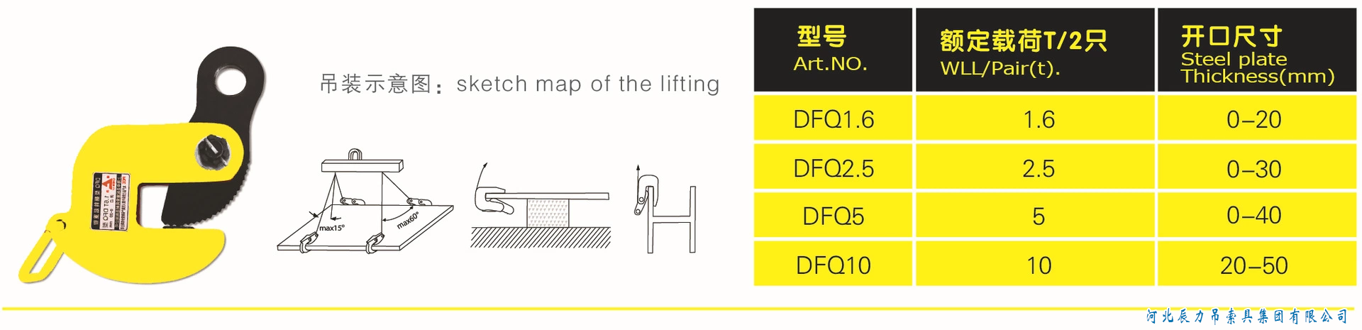 3.本翻轉起重鉗適用于型鋼和鋼板的翻轉,也適用于鋼板水平吊運。